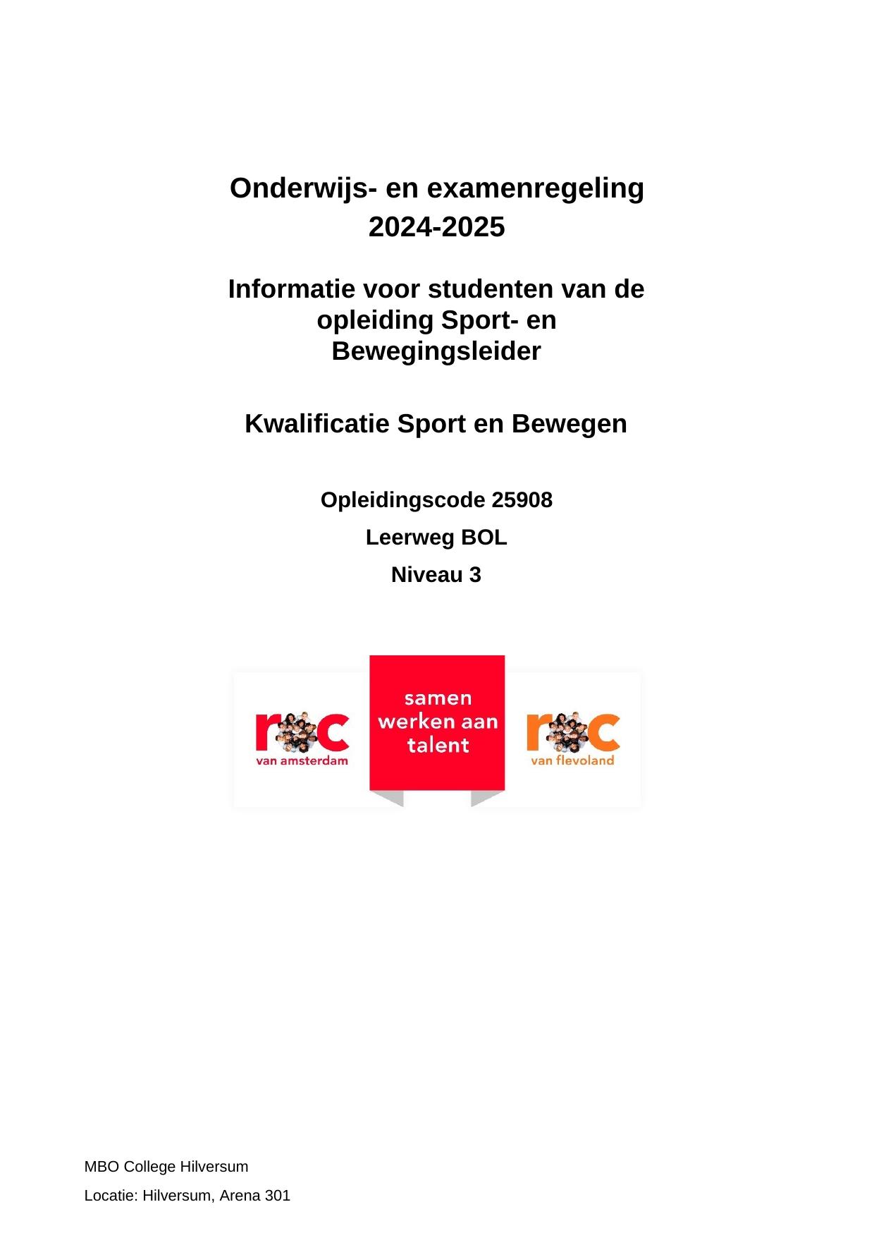 Sport & Bewegingscoördinator TSB23366ORBC in cohort 2024-2025