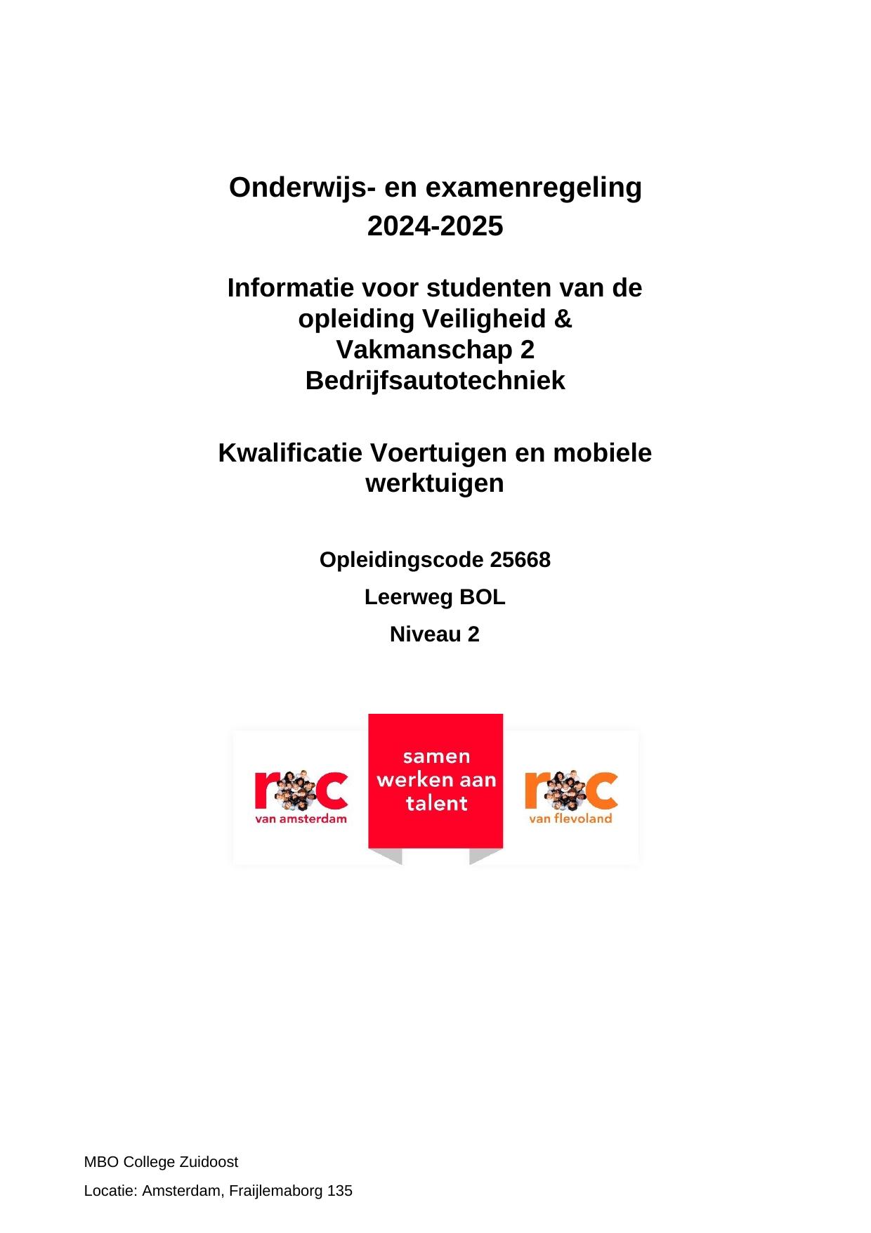 Veiligheid & Vakmanschap 2 Bedrijfsautotechniek OVC25668OR in cohort 2024-2025