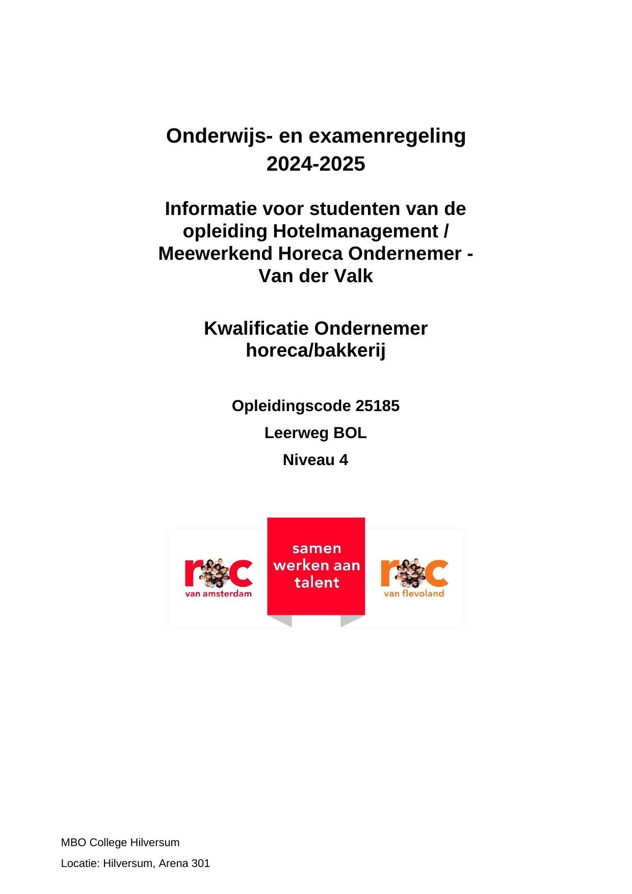 Hotelmanagement / Meewerkend Horeca Ondernemer - Van der Valk HHO25185ORV in cohort 2024-2025
