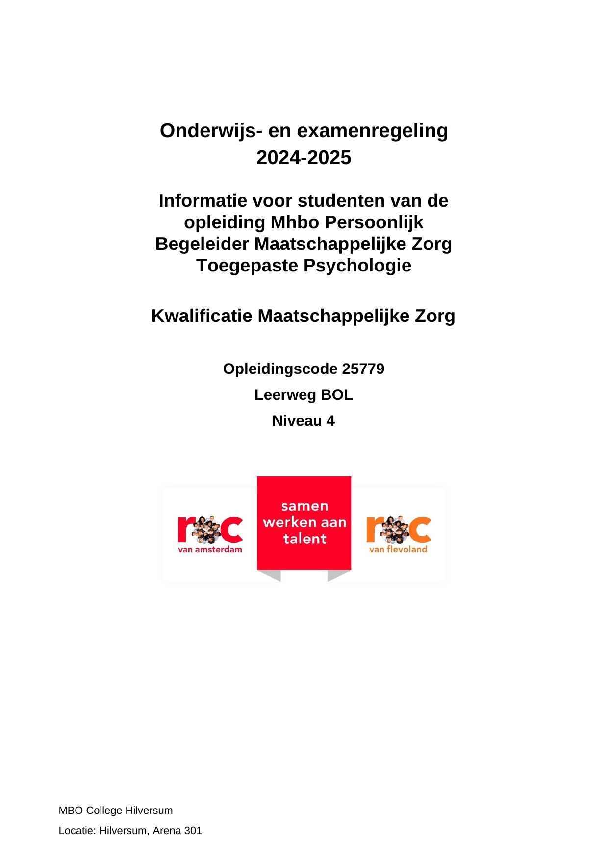 Mhbo Persoonlijk Begeleider Maatschappelijke Zorg Toegepaste Psychologie HMV25779OM in cohort 2024-2025