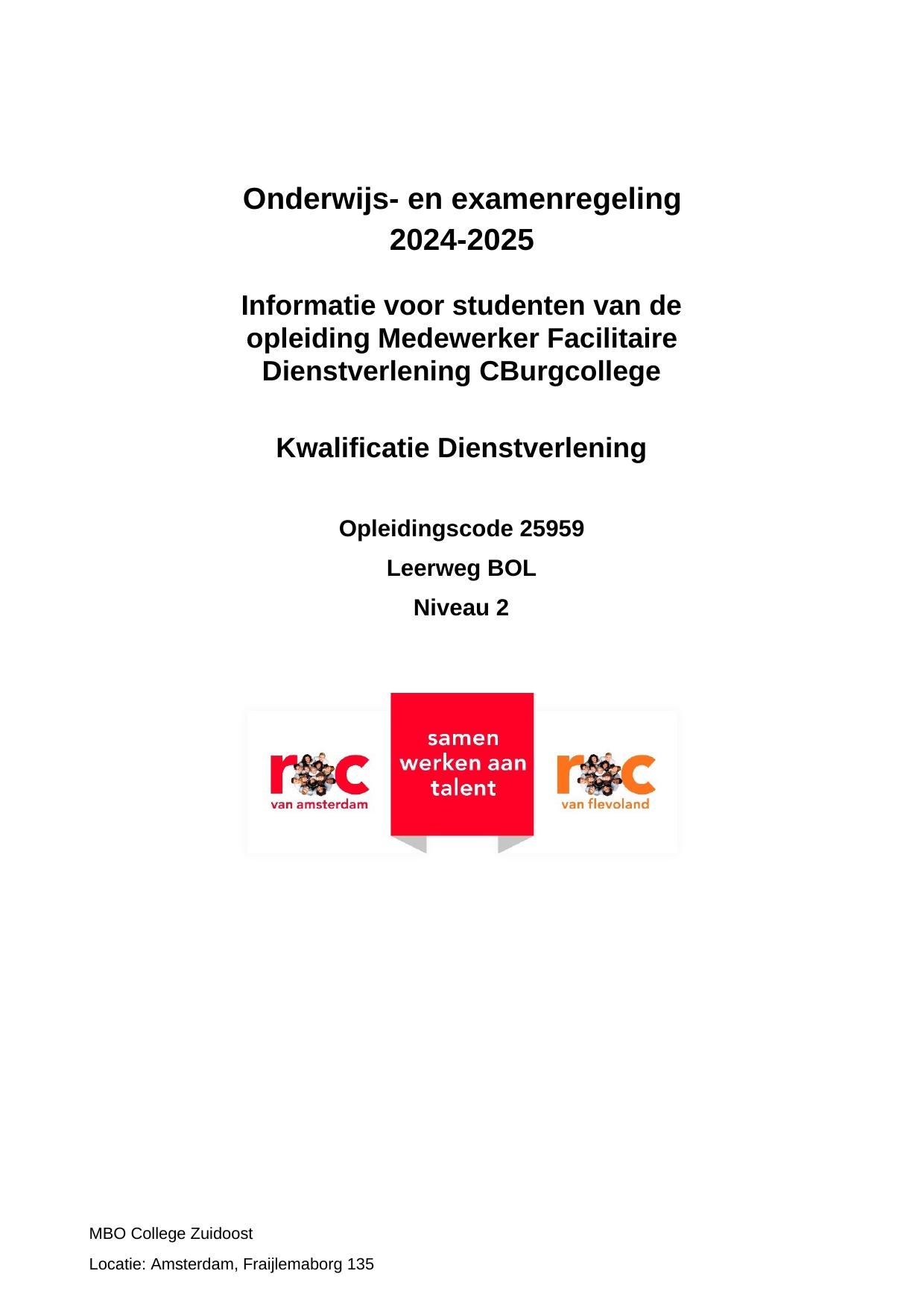 Medewerker Facilitaire Dienstverlening CBurgcollege OSB25959OBC in cohort 2024-2025