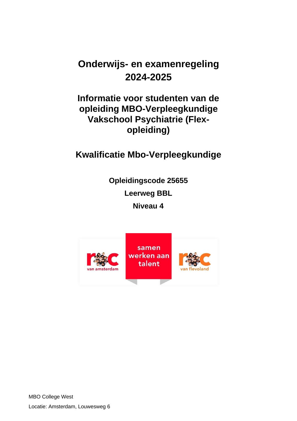 MBO-Verpleegkundige Vakschool Psychiatrie (Flex-opleiding) WVP25655BZVL in cohort 2024-2025