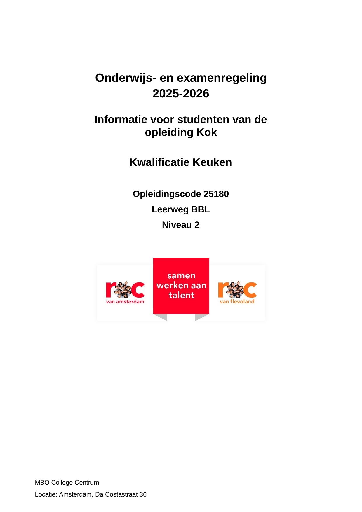 Zelfstandig Werkend Kok CCR25182BR in cohort 2025-2026