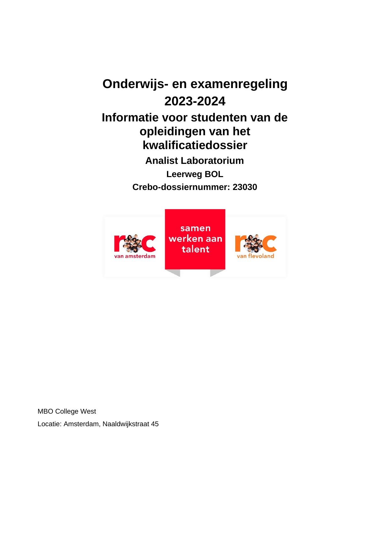 Analist Laboratorium WLB23030OR in cohort 2023-2024