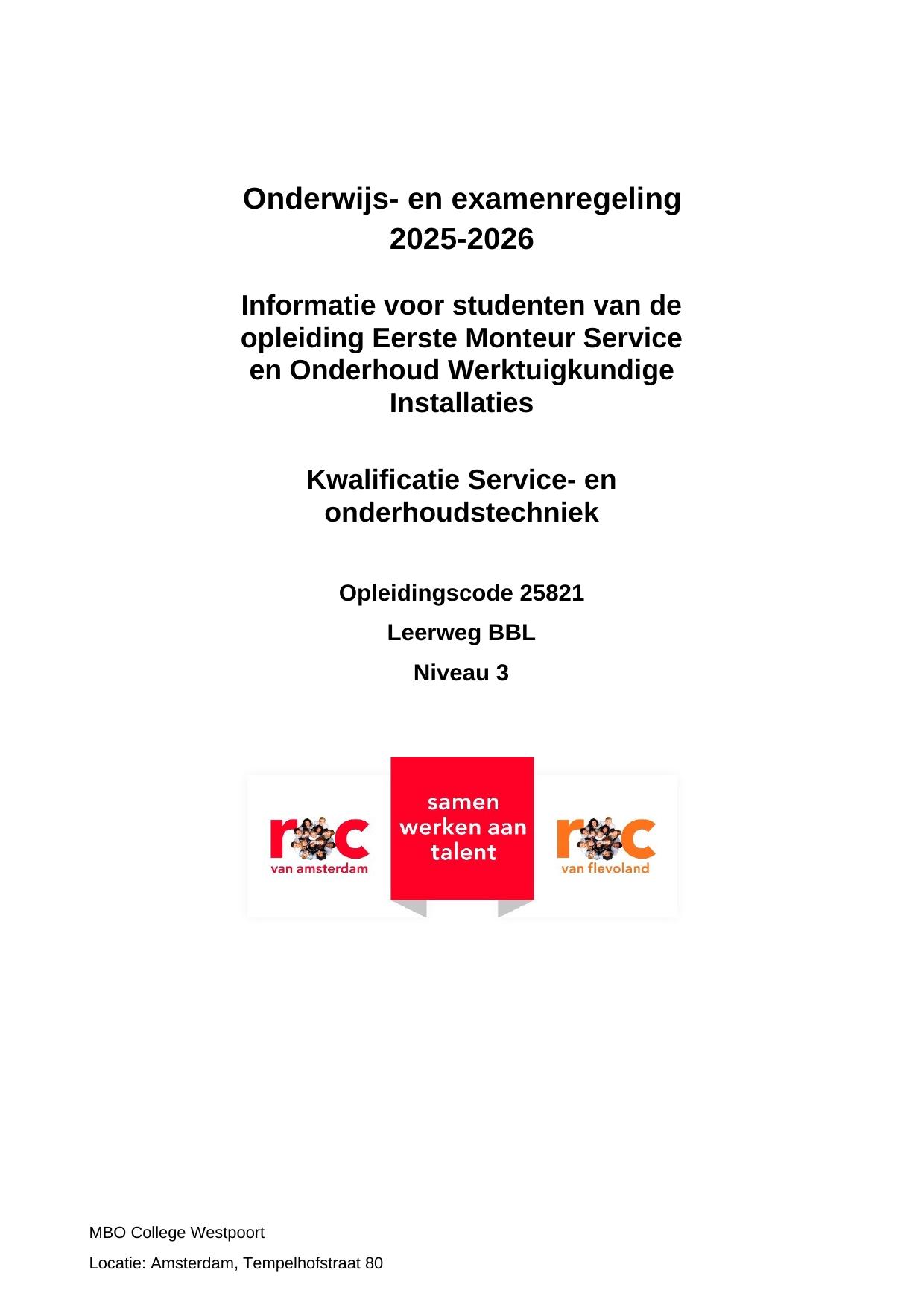 Eerste Monteur Service en Onderhoud Werktuigkundige Installaties MTN25821OR in cohort 2025-2026