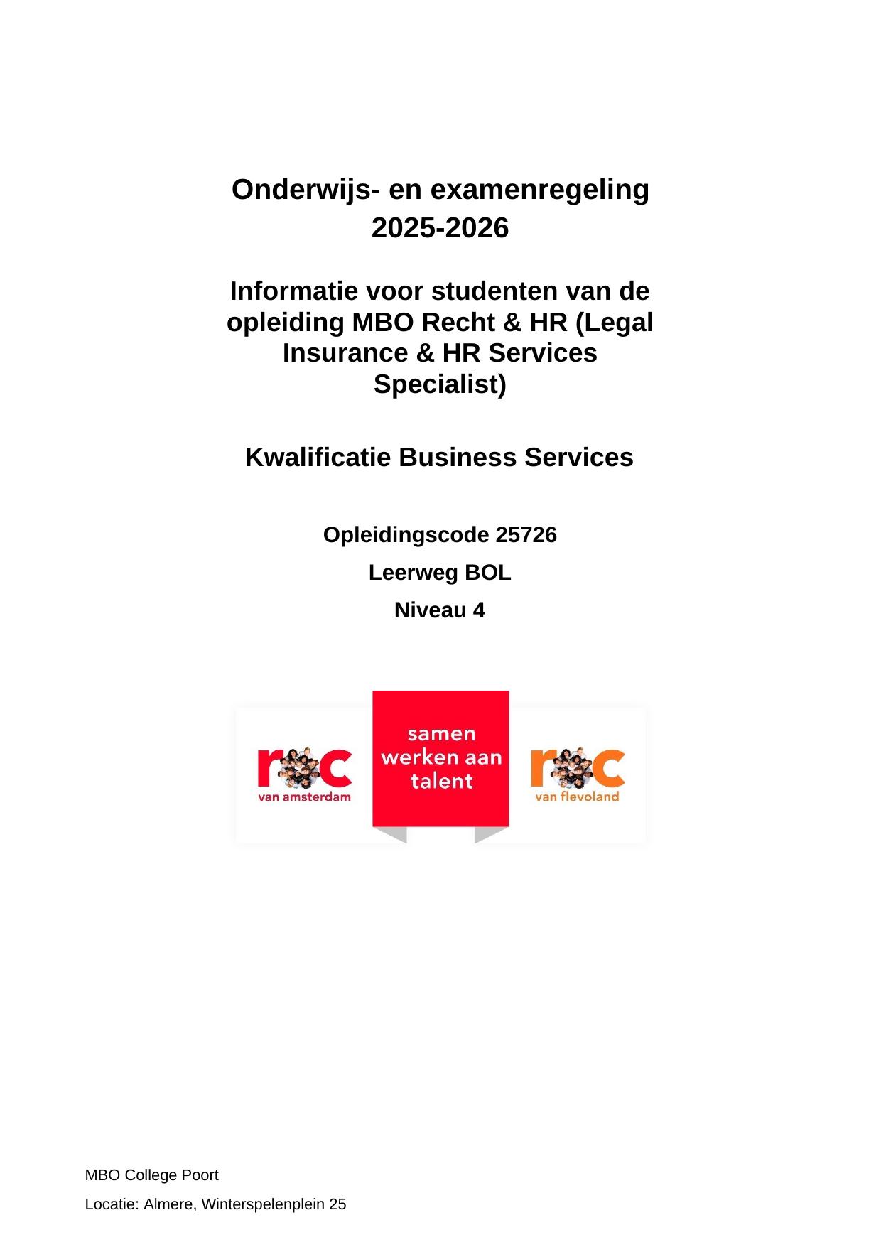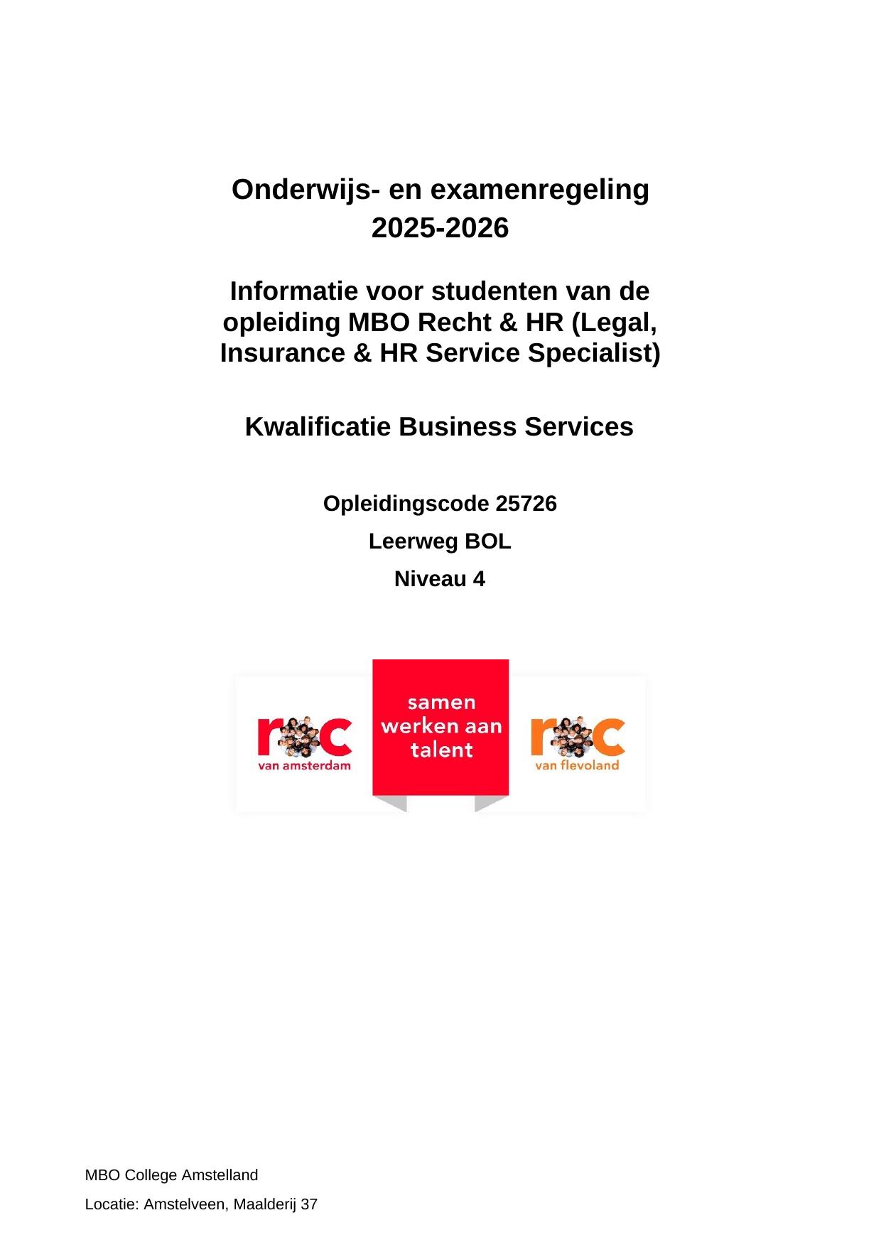 MBO Recht & HR (Legal, Insurance & HR Service Specialist) LJD25726OR in cohort 2025-2026