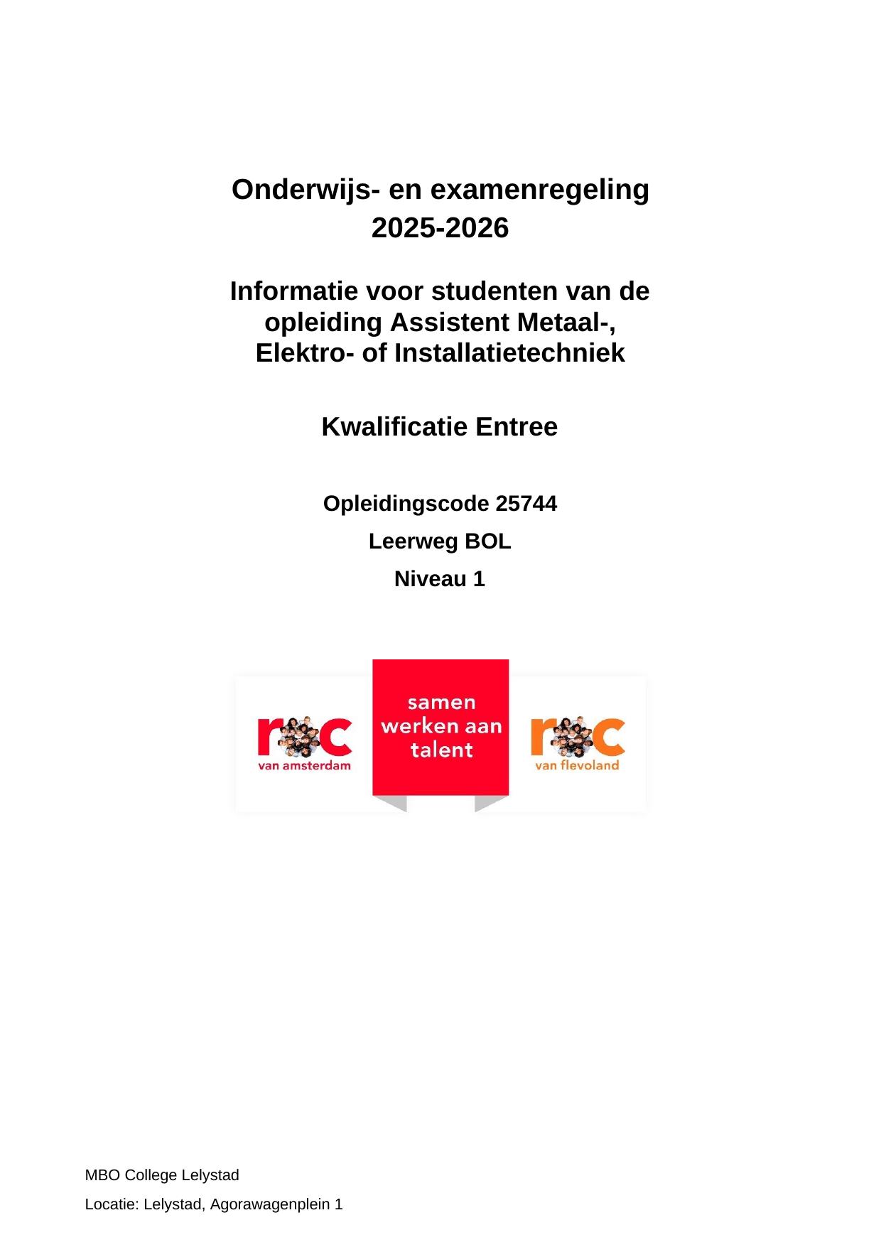 Assistent Metaal-, Elektro- of Installatietechniek SEB25744OR in cohort 2025-2026