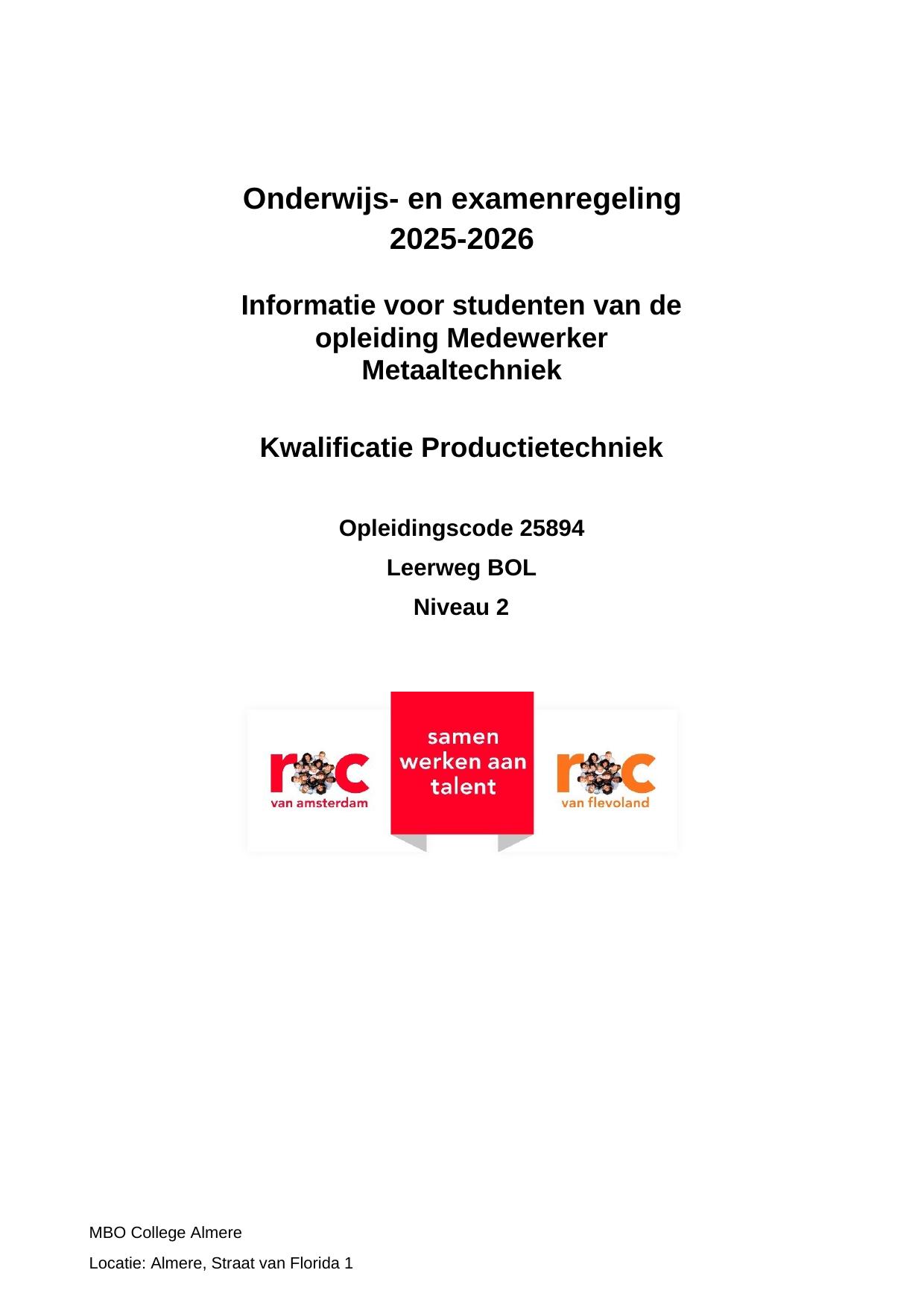 Medewerker Metaaltechniek MTN25894OR in cohort 2025-2026