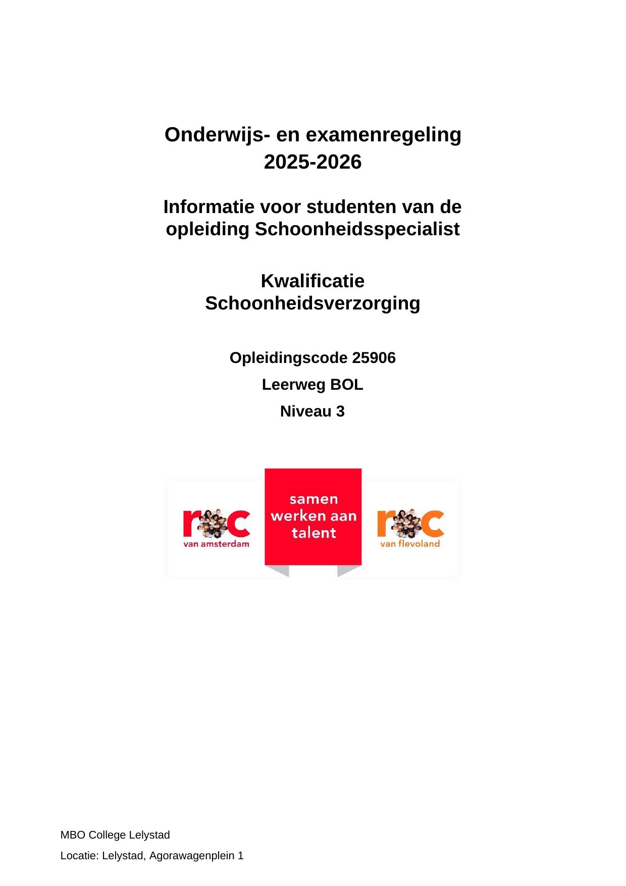 Schoonheidsspecialist SZW25906ORSS in cohort 2025-2026