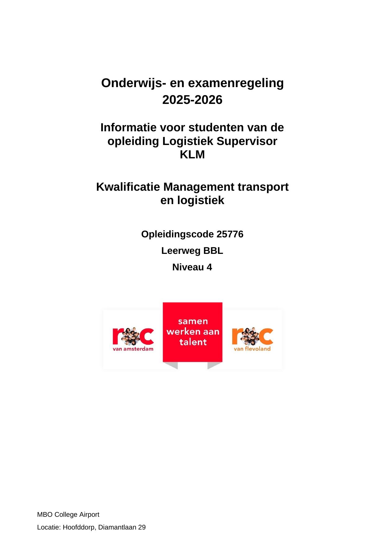 Logistiek Supervisor KLM ALO25776BRK in cohort 2025-2026