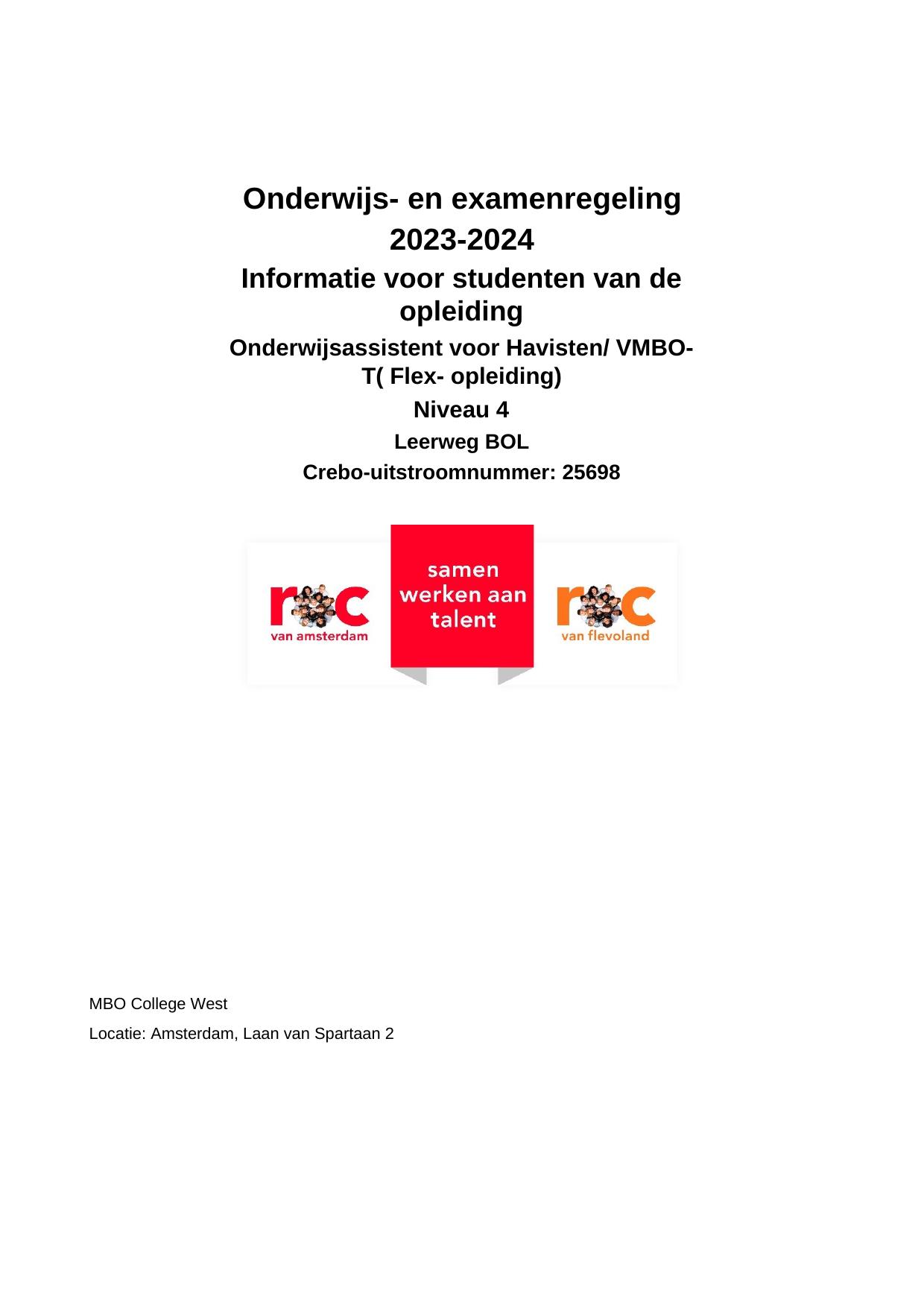 Onderwijsassistent voor Havisten/Vmbo-t (Flex-opleiding) WPW25698OS in cohort 2023-2024