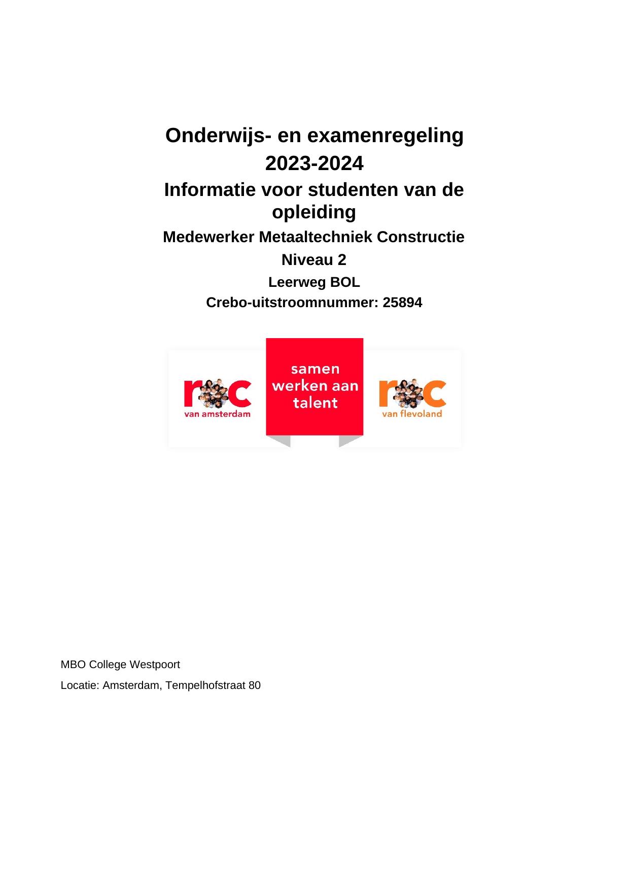 Medewerker Metaaltechniek Constructie PNT25894ORC in cohort 2023-2024
