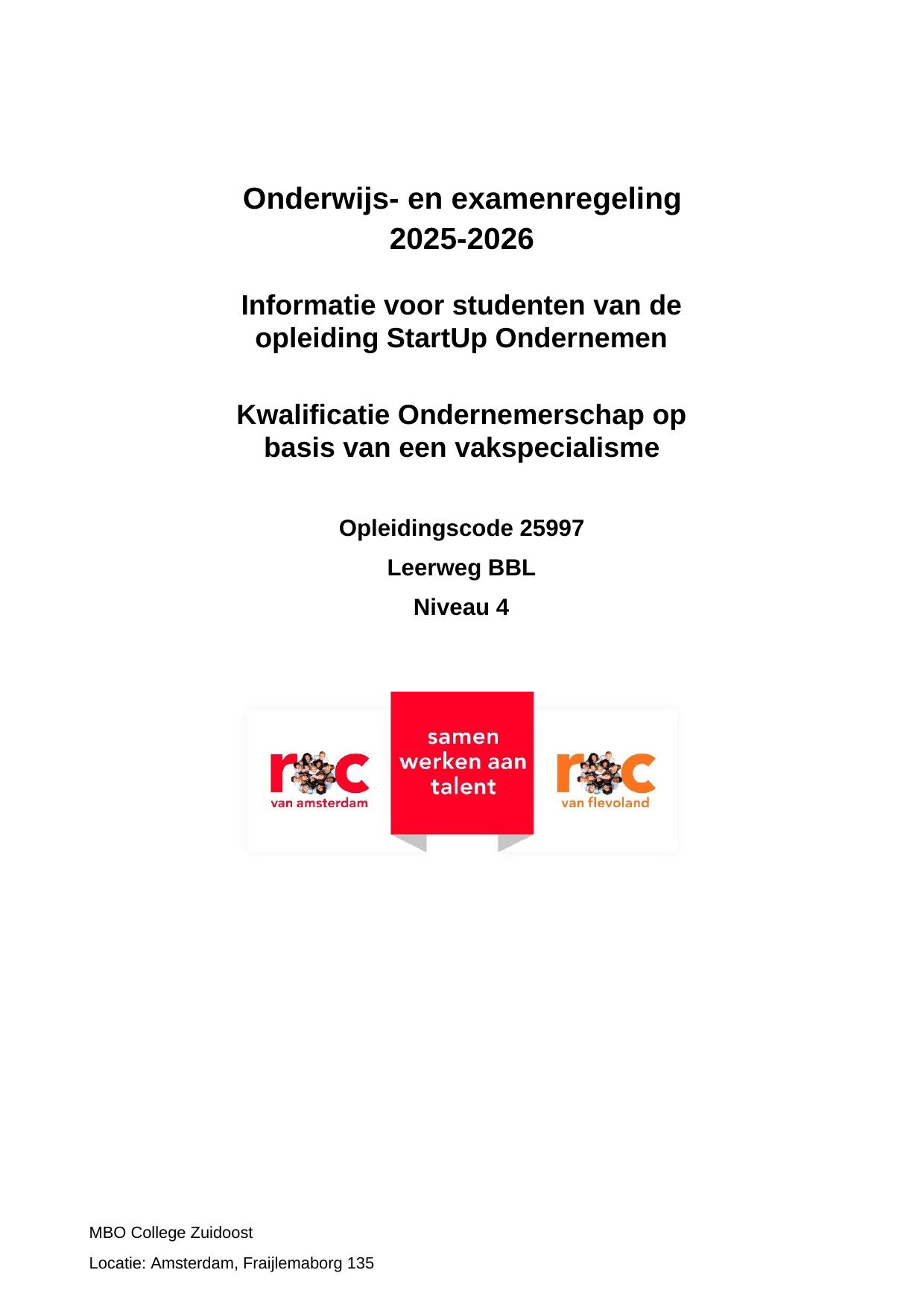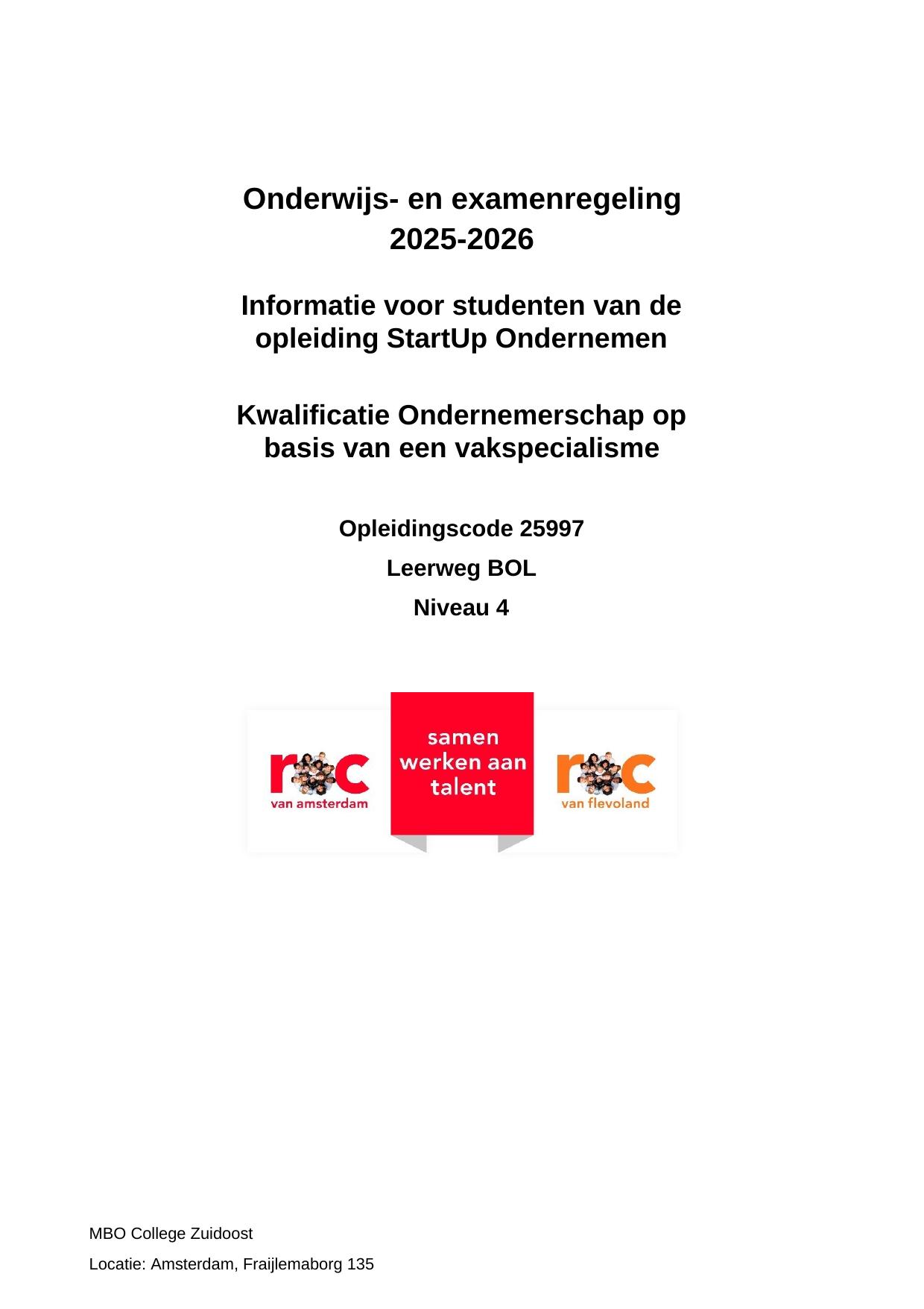 StartUp Ondernemen OON25997BKS in cohort 2025-2026