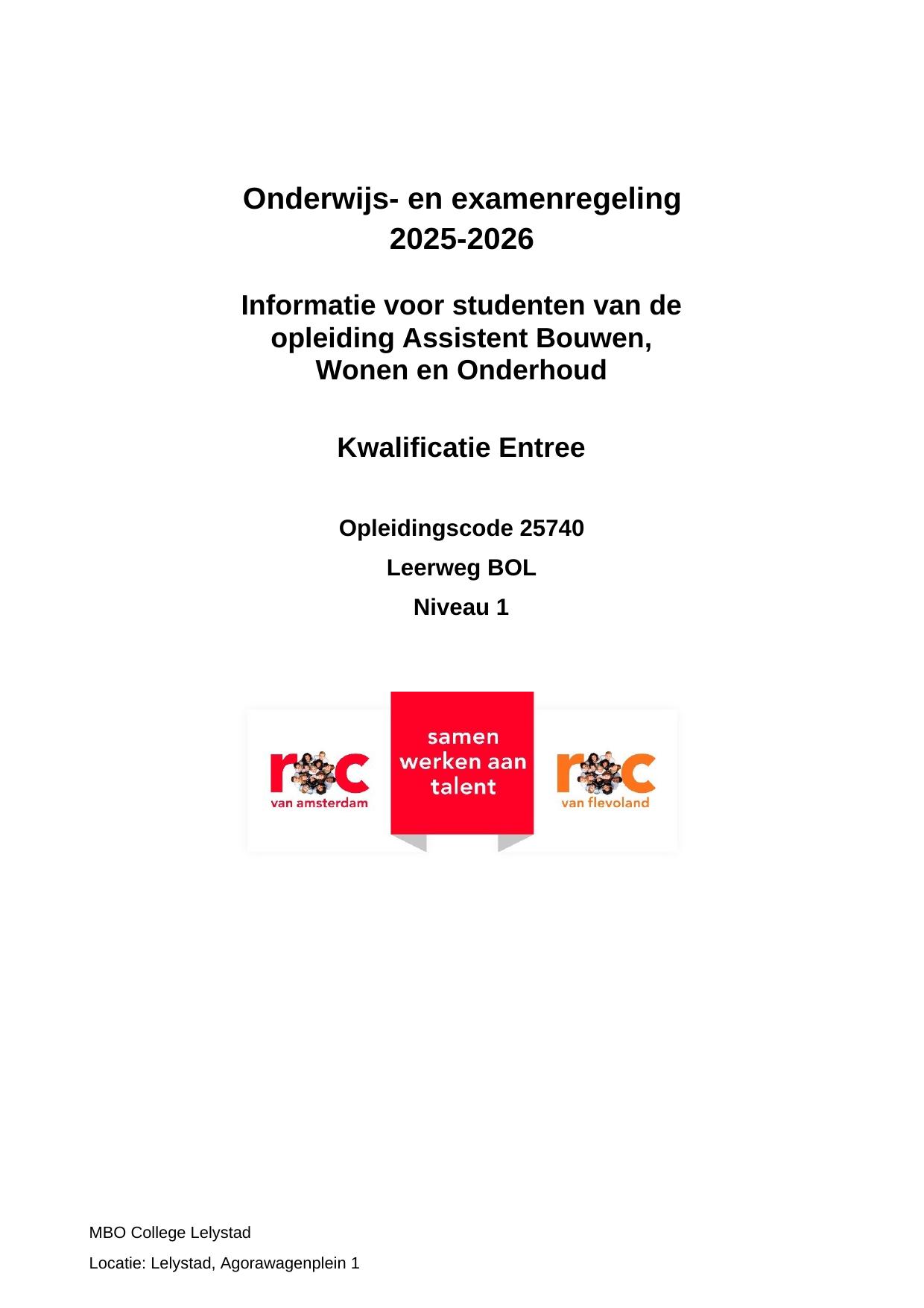 Assistent Bouwen, Wonen en Onderhoud SEB25740ORN in cohort 2025-2026