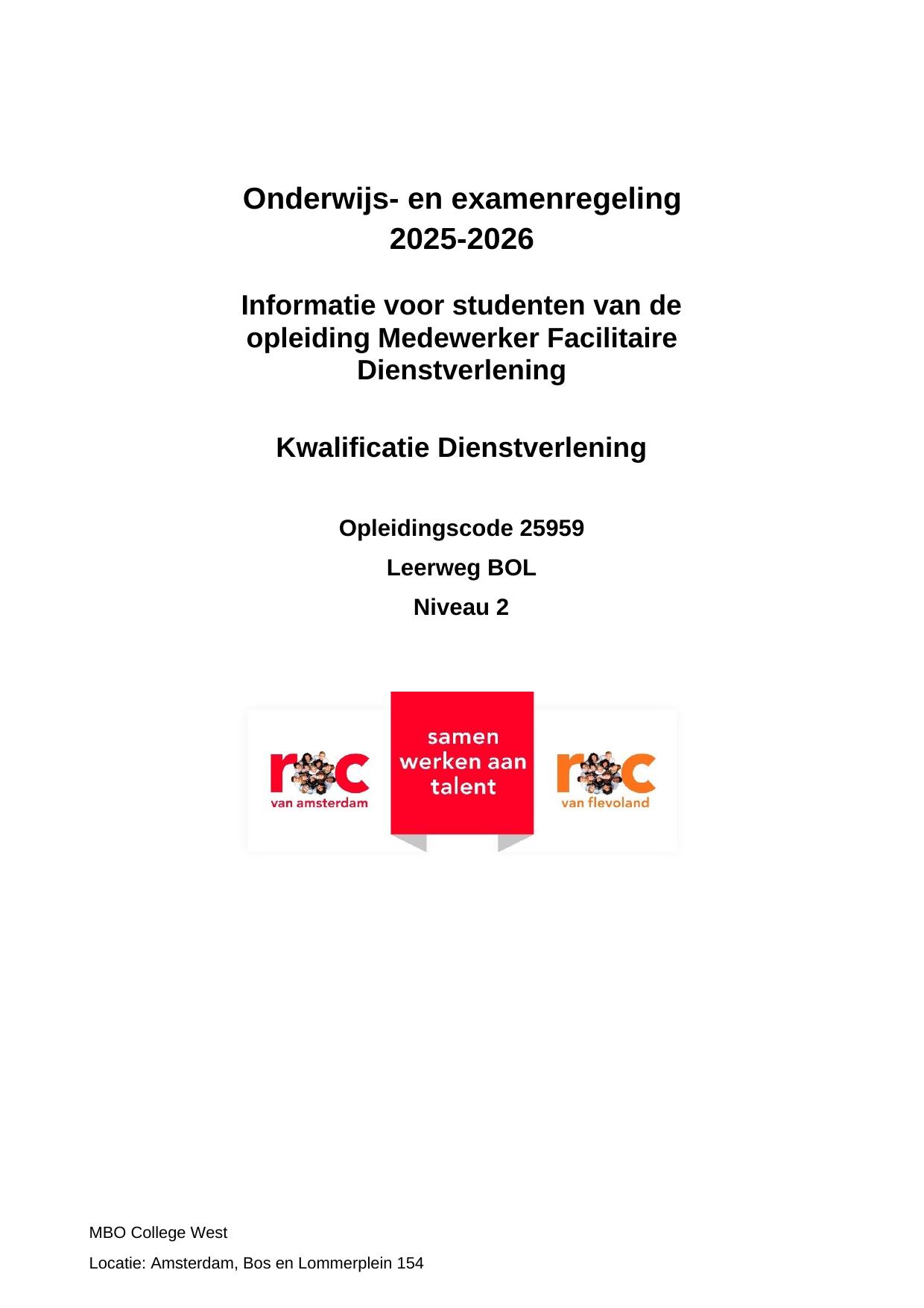 Medewerker Facilitaire Dienstverlening WPB25959OB in cohort 2025-2026