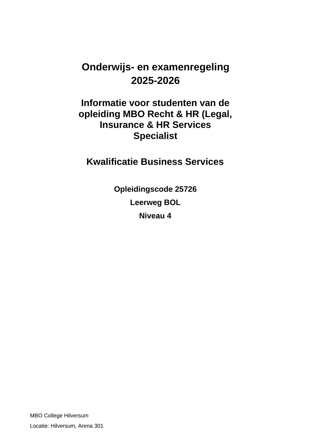 MBO Recht & HR (Legal, Insurance & HR Services Specialist HJB25726OR in cohort 2025-2026