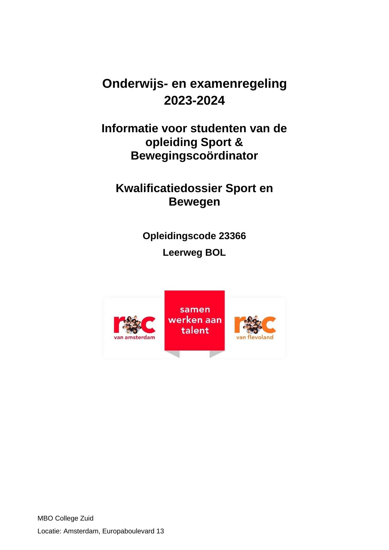 Sport & Bewegingscoördinator ZSB23366ORBC in cohort 2023-2024