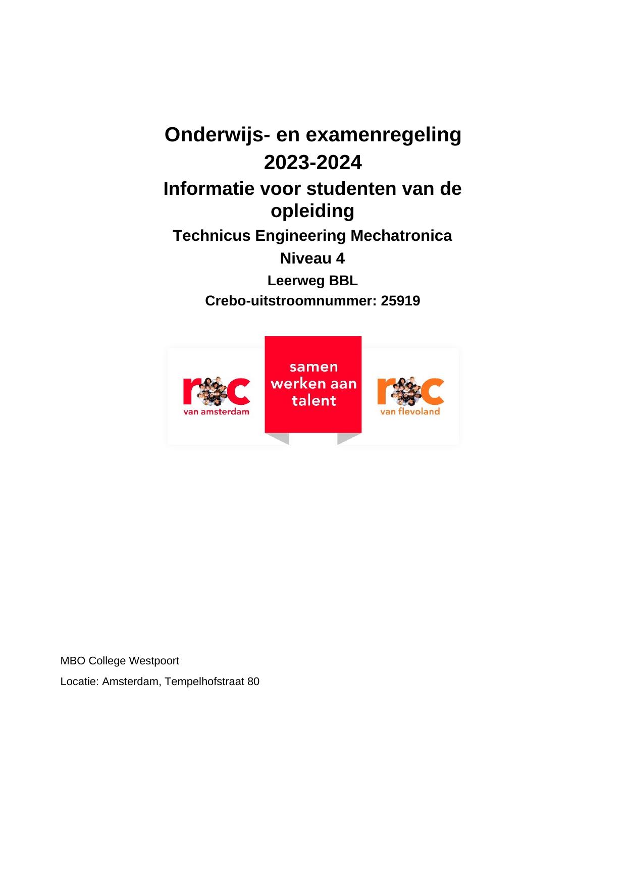Technicus Engineering Mechatronica PNT25919BRMT in cohort 2023-2024
