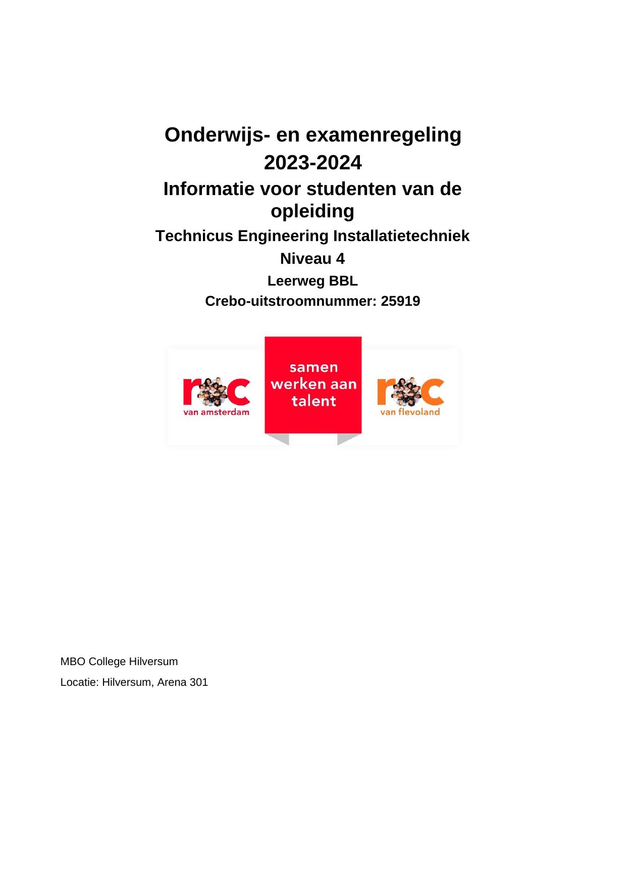 Technicus Engineering Installatietechniek HTN25919BRIT in cohort 2023-2024