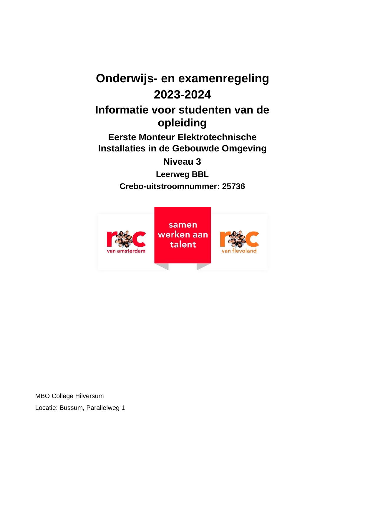 Eerste Monteur Elektrotechnische Installaties in de Gebouwde Omgeving HGO25736BR in cohort 2023-2024