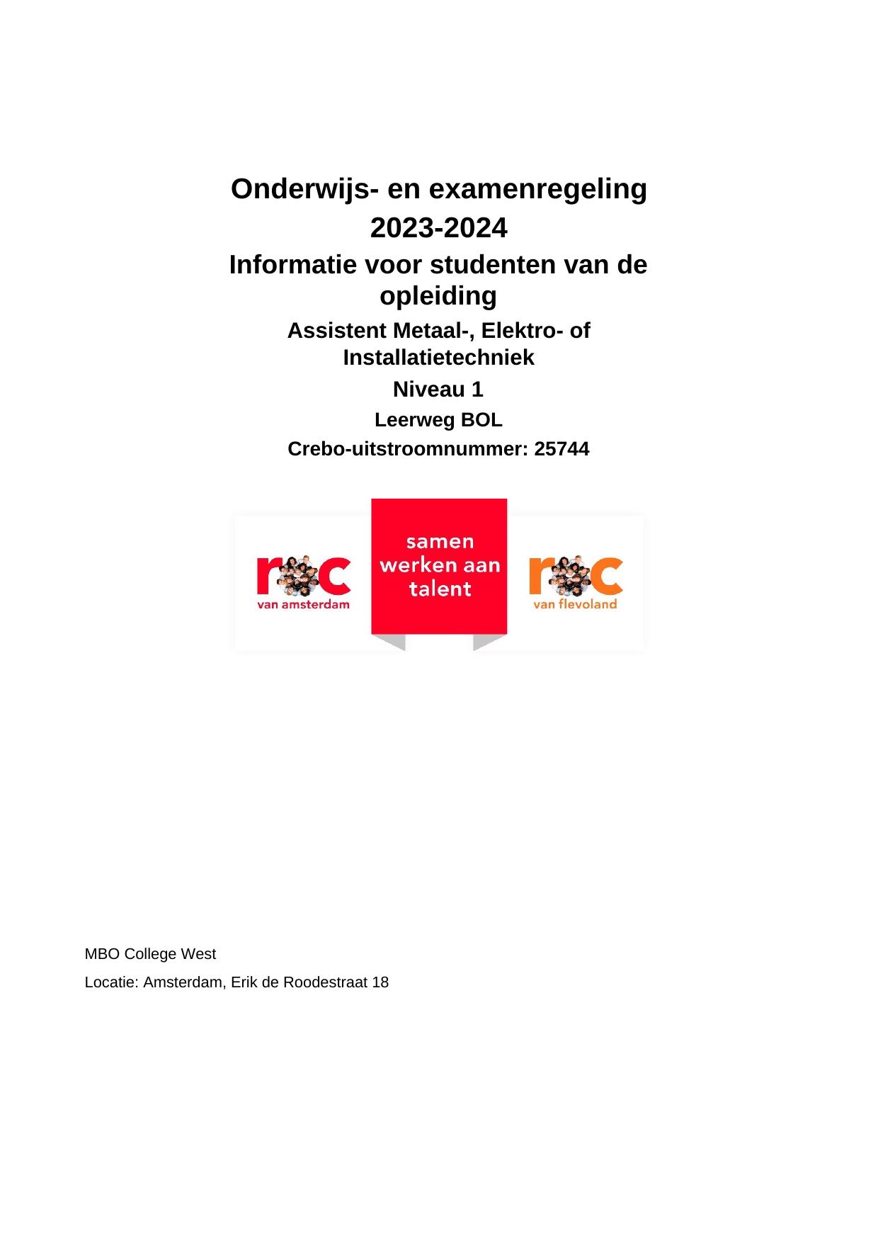 Assistent Metaal-, Elektro- of Installatietechniek WRO25744OR in cohort 2023-2024