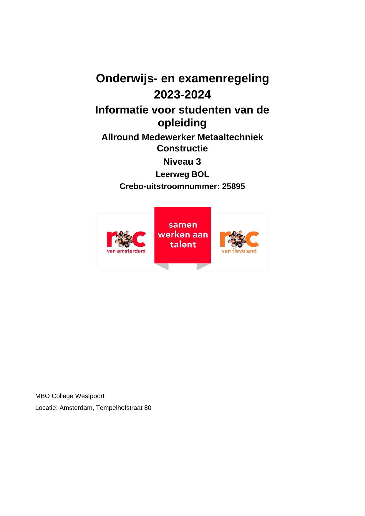 Allround Medewerker Metaaltechniek Constructie PNT25895ORC in cohort 2023-2024