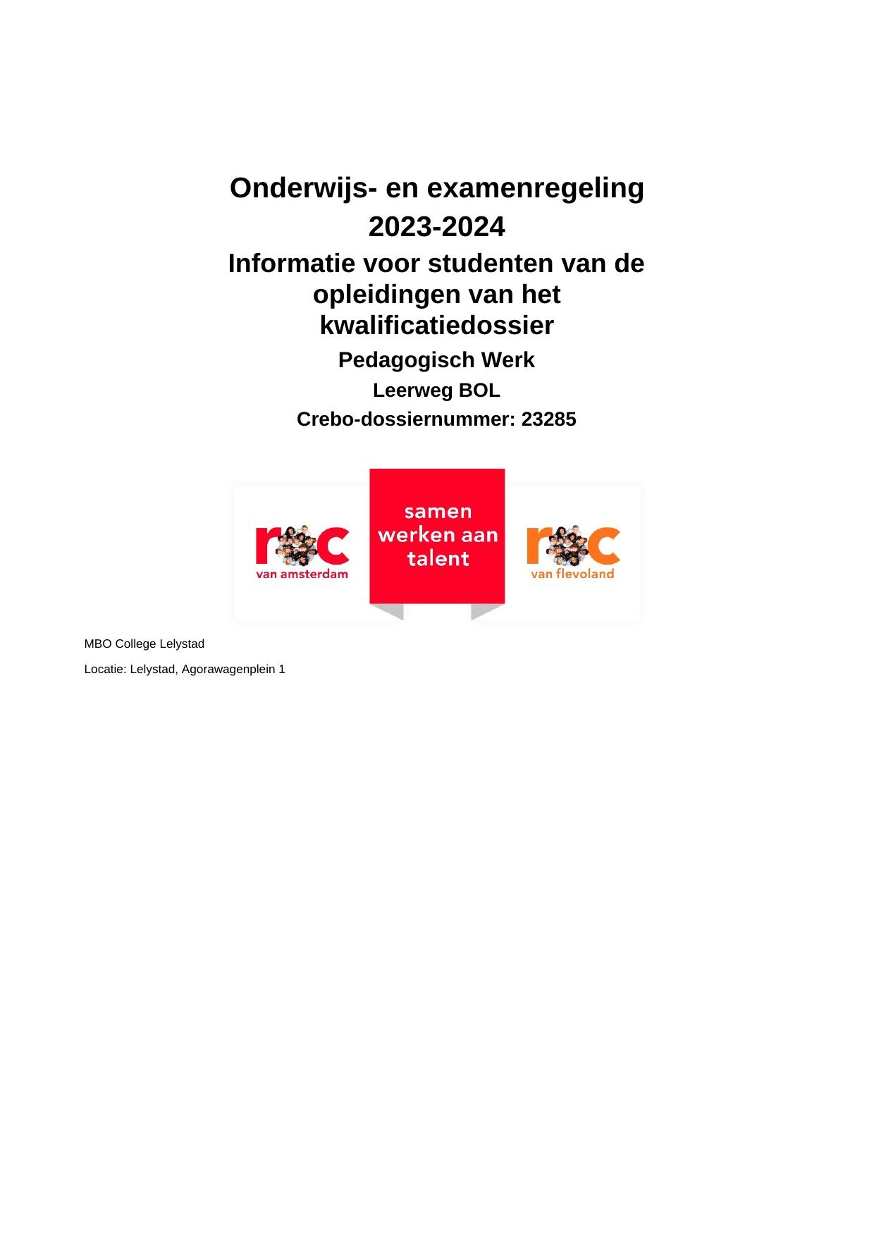 Pedagogisch Werk SZW23285OR in cohort 2023-2024