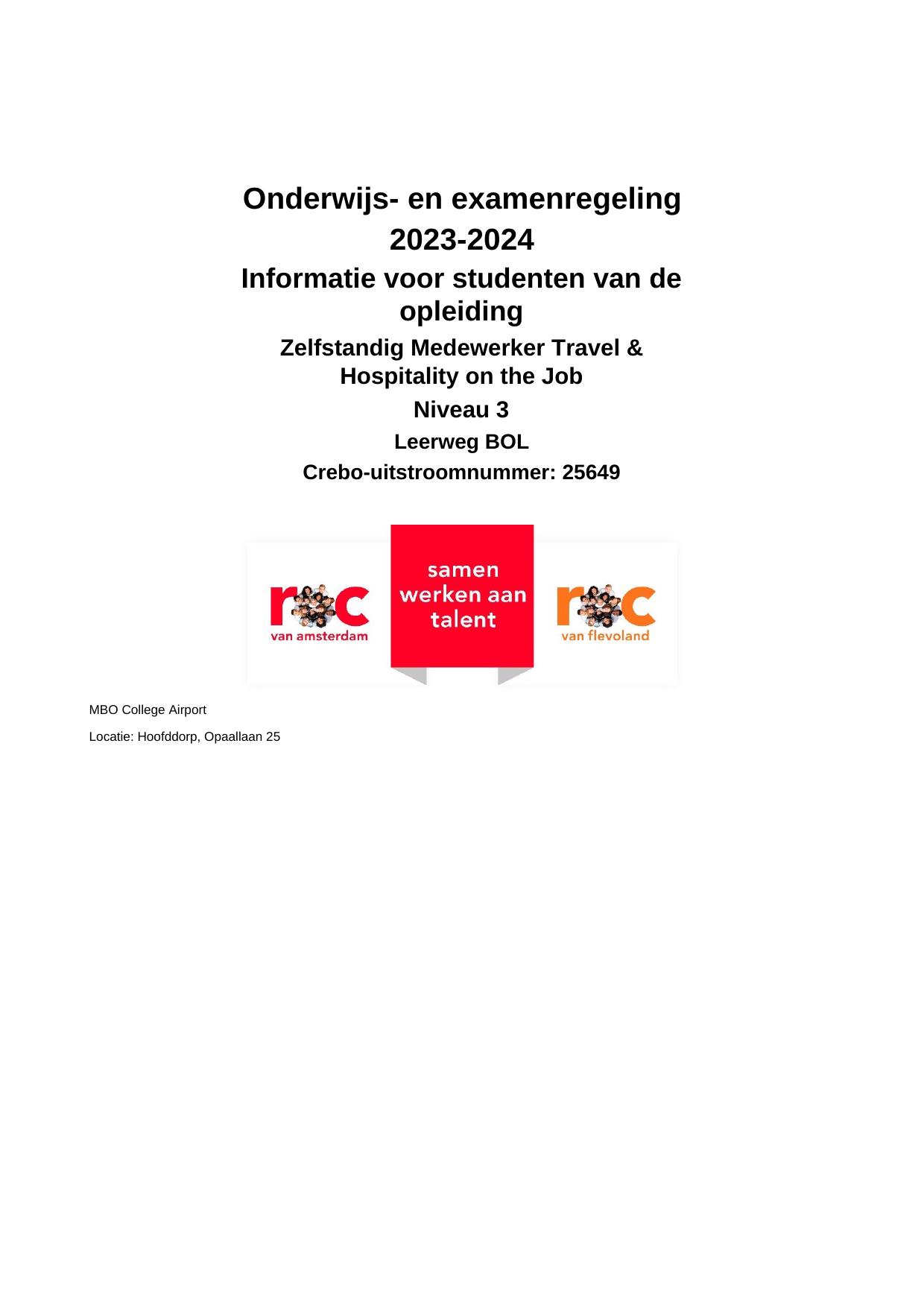 Zelfstandig Medewerker Travel & Hospitality on the Job ATH25649OZ in cohort 2023-2024
