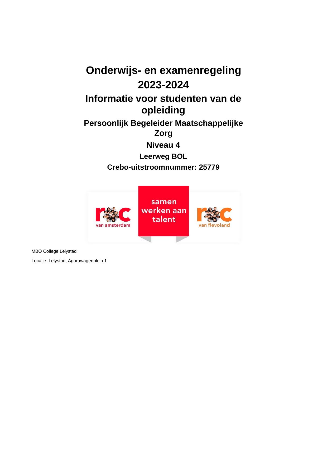 Persoonlijk Begeleider Maatschappelijke Zorg SZW25779OR in cohort 2023-2024