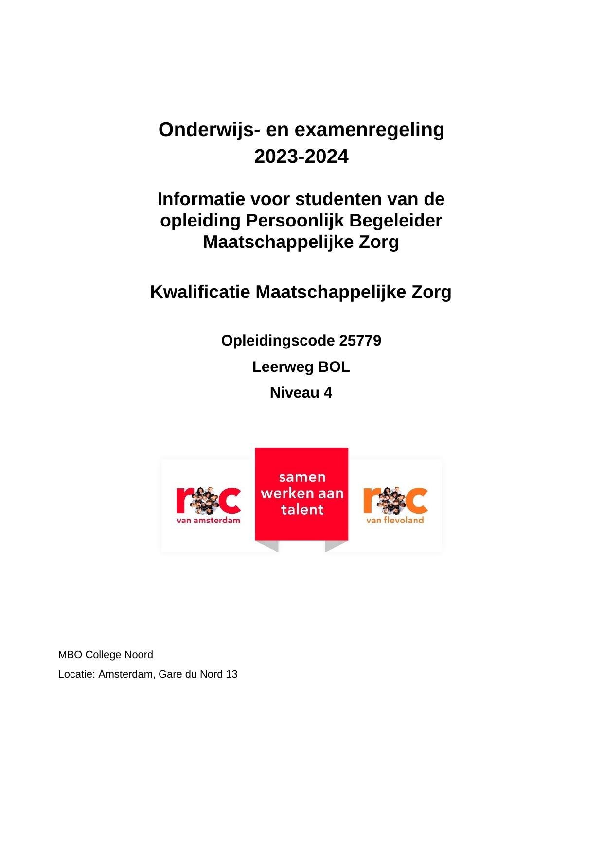 Persoonlijk Begeleider Maatschappelijke Zorg NZW25779OR in cohort 2023-2024