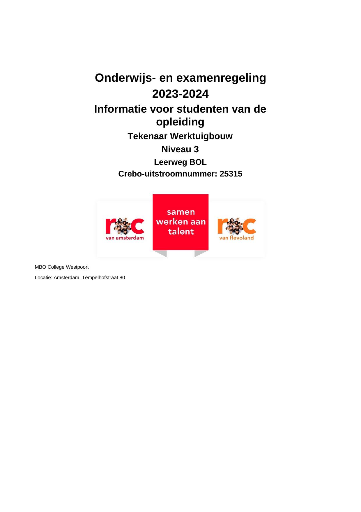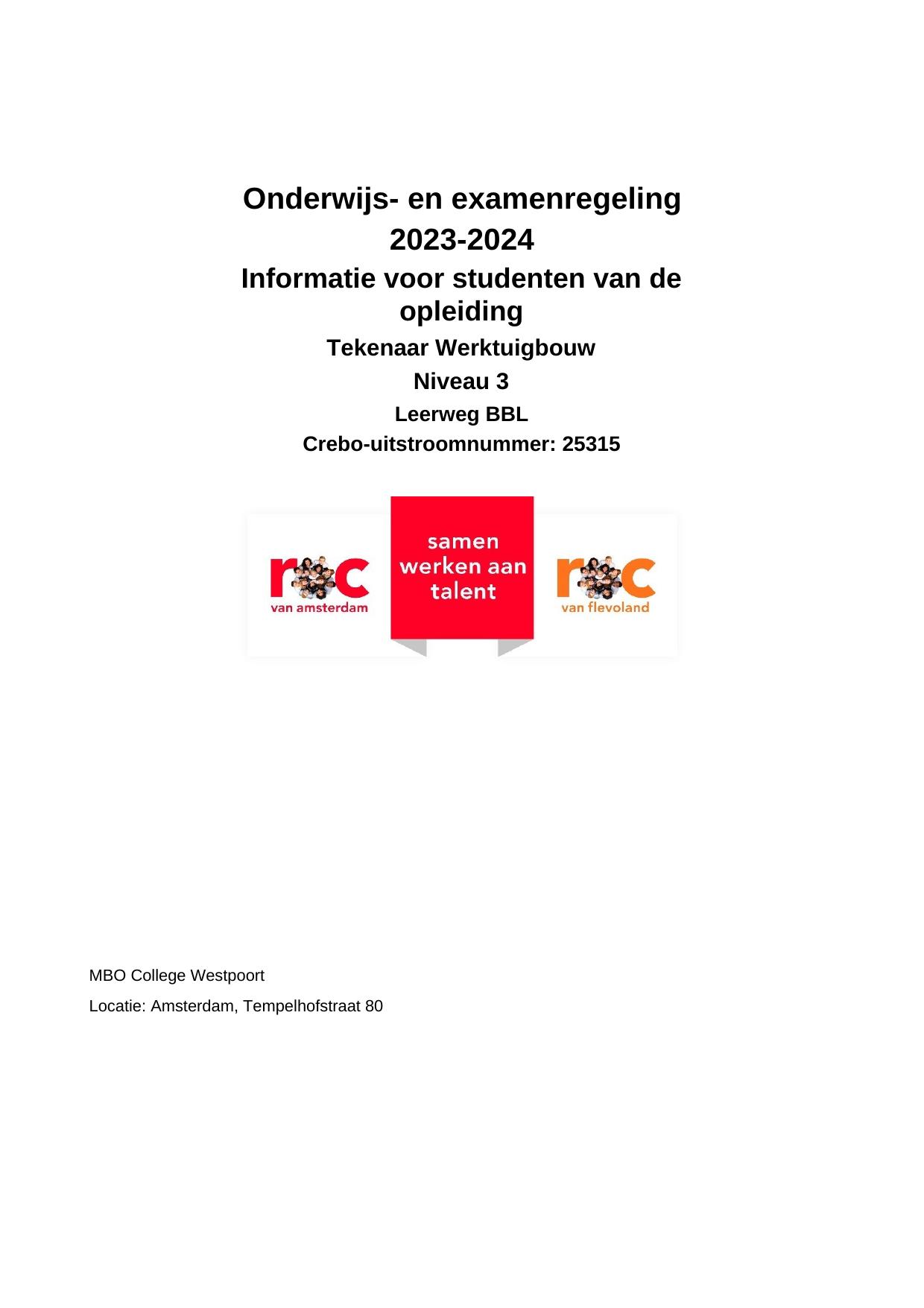 Tekenaar Werktuigbouw PNT25315OR in cohort 2023-2024