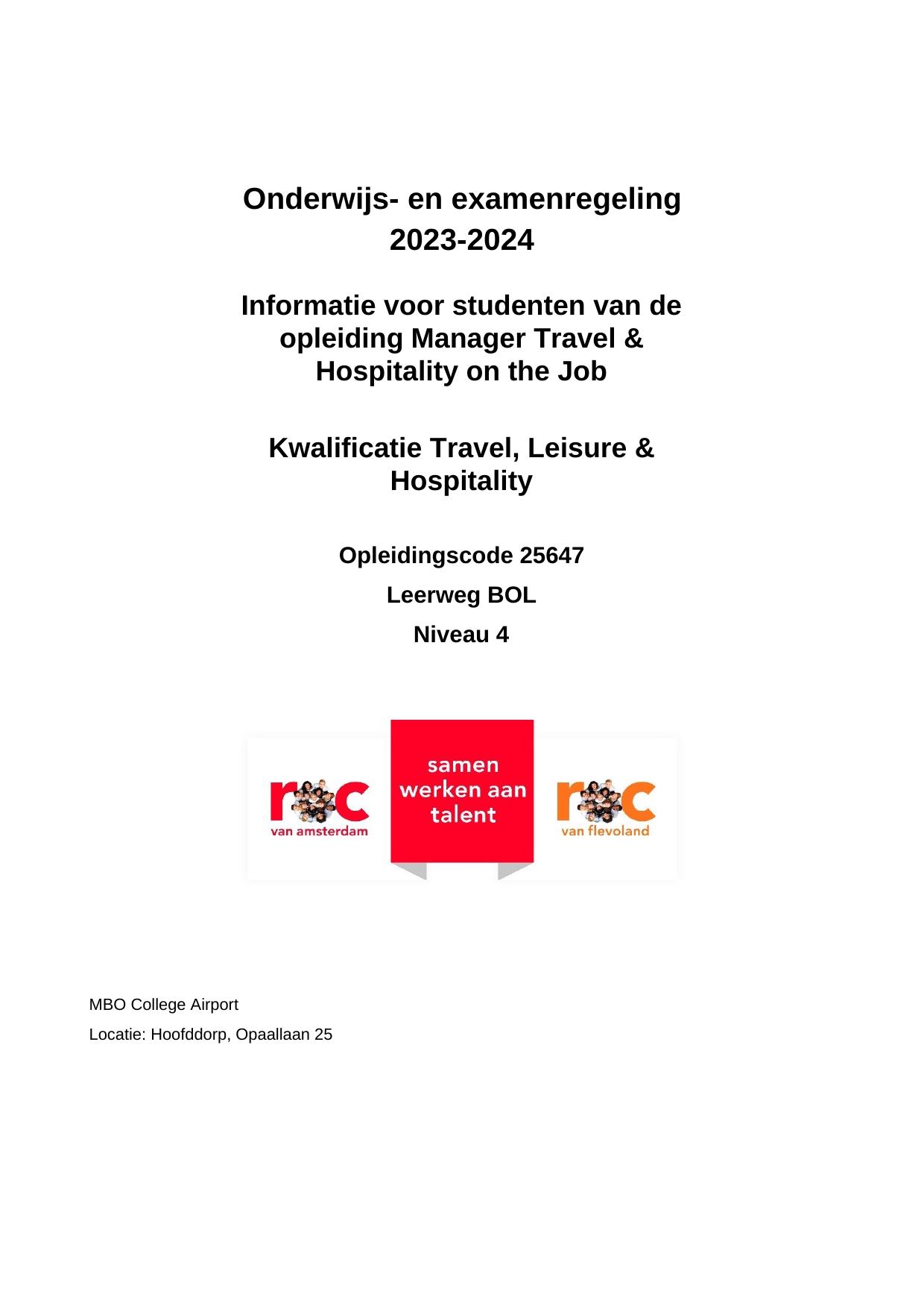 Manager Travel & Hospitality on the Job ATH25647OROJ in cohort 2023-2024