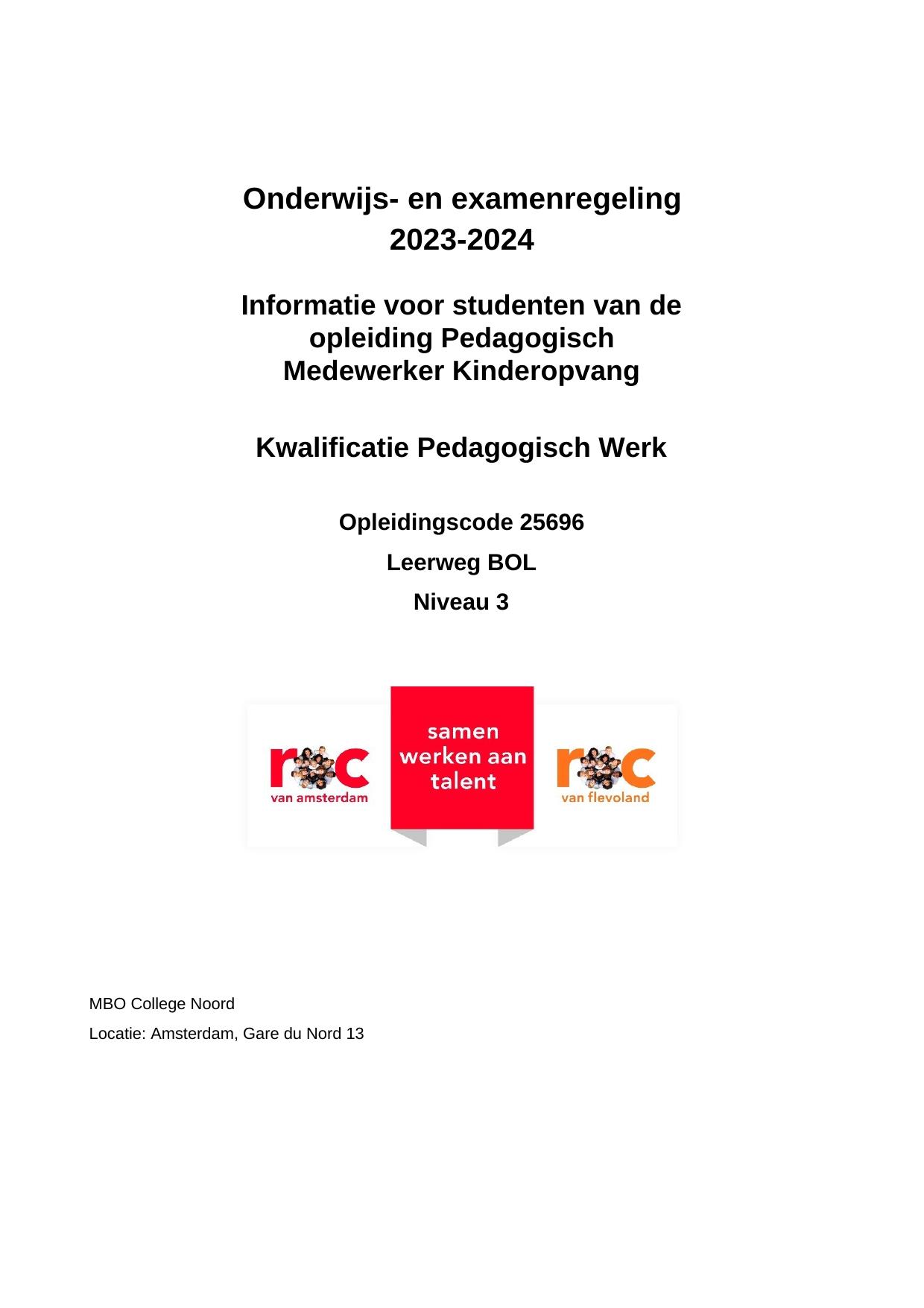Pedagogisch Medewerker Kinderopvang NZW25696OR in cohort 2023-2024