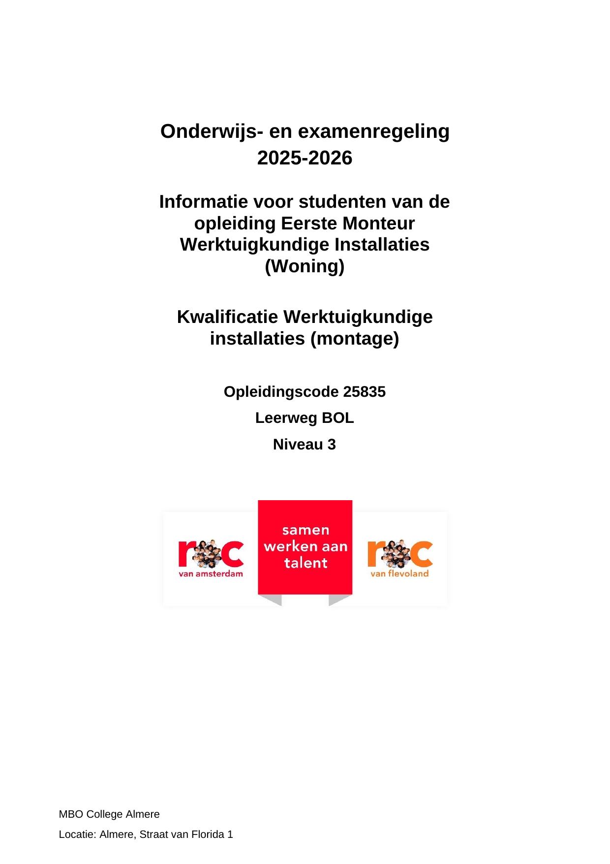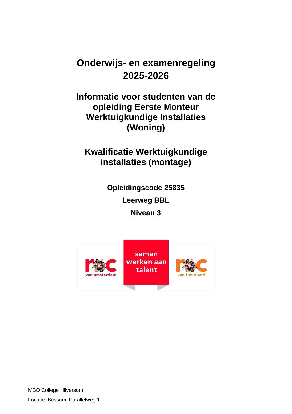 Eerste Monteur Werktuigkundige Installaties (Woning) MTN25835BR in cohort 2025-2026