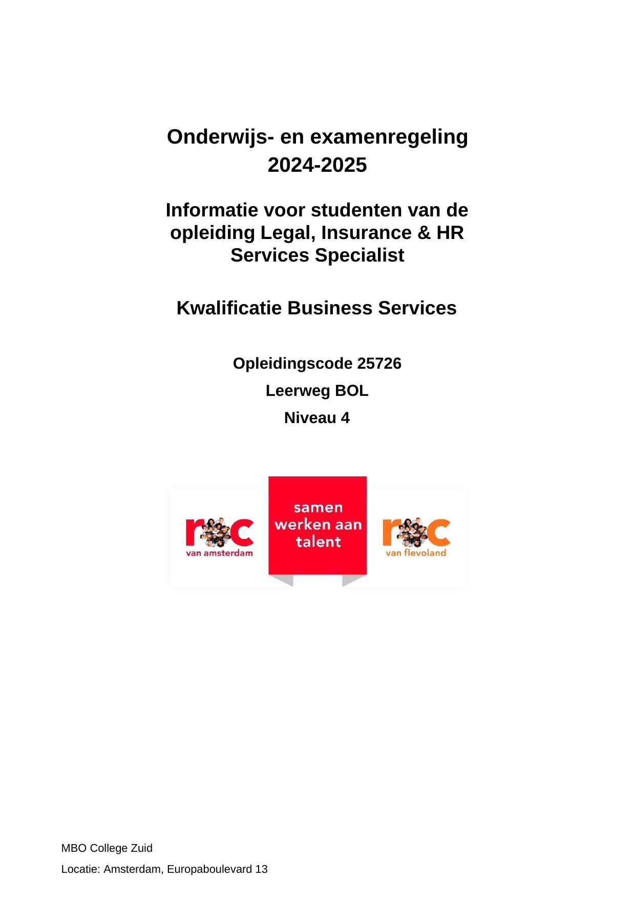 MBO Recht & HR (Legal Insurance & HR Services Specialist) ZJD25726OR in cohort 2024-2025
