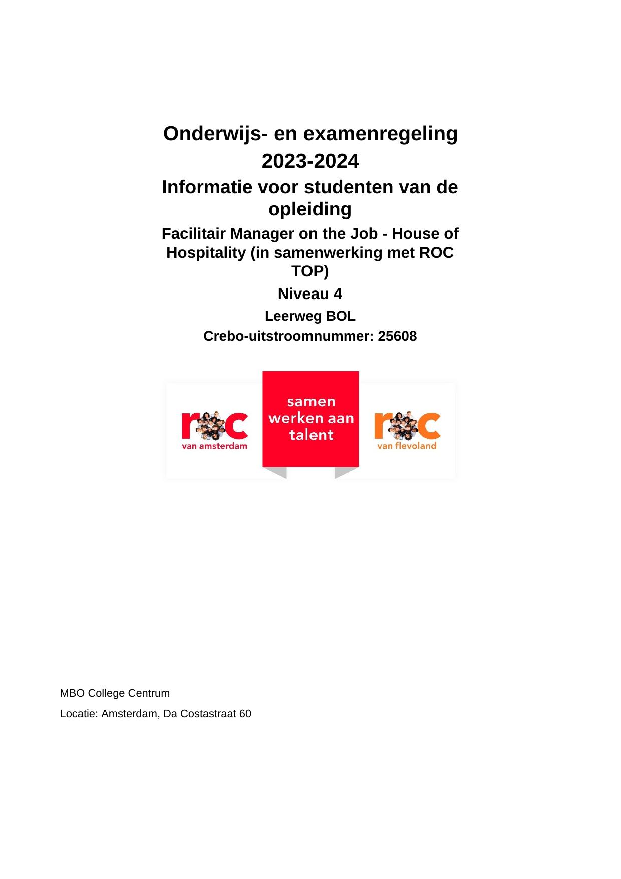 Facilitair Manager on the Job - House of Hospitality (in samenwerking met ROC TOP) COJ25608OR in cohort 2023-2024