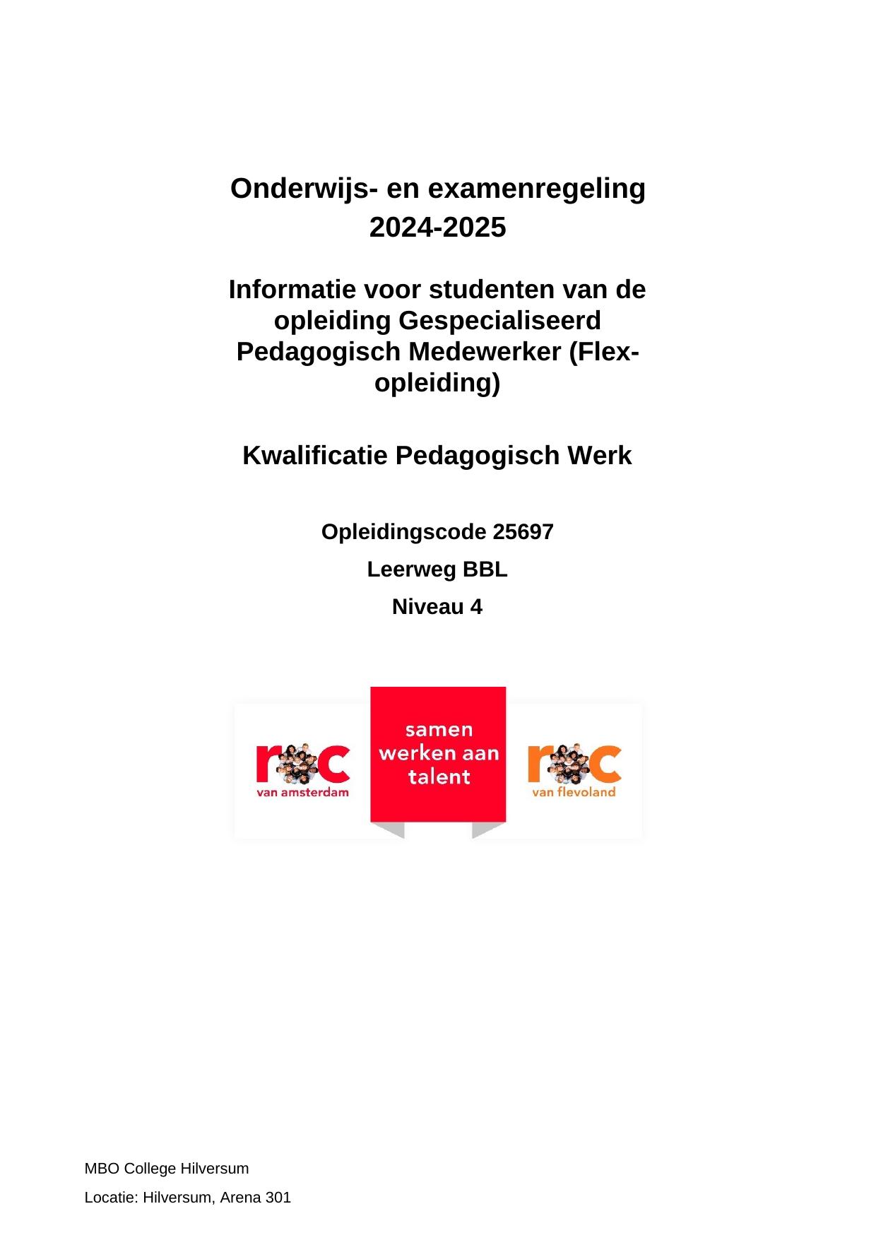 Gespecialiseerd Pedagogisch Medewerker (Flex-opleiding) MWZ25697OS in cohort 2024-2025
