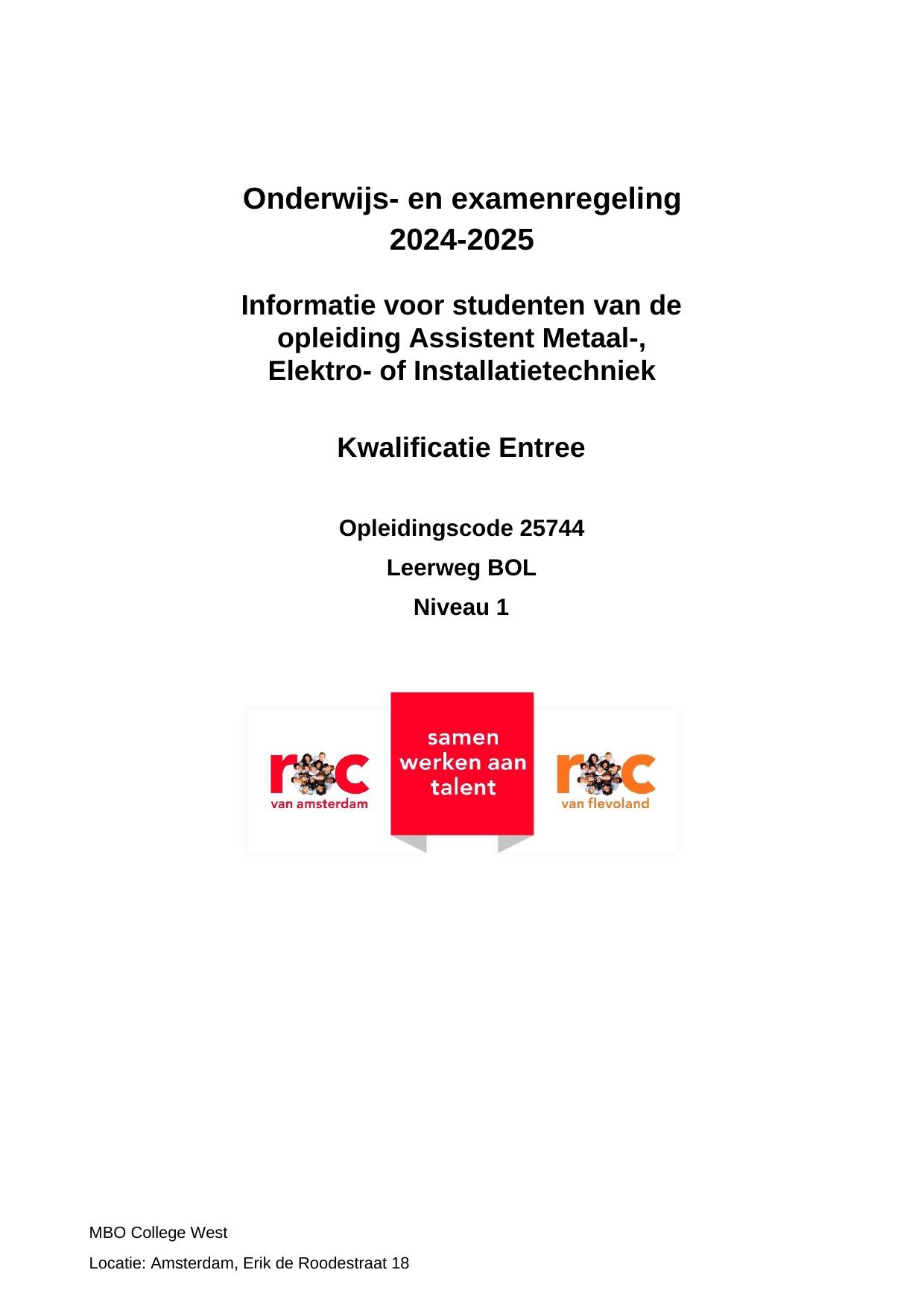 Assistent Metaal-, Elektro- of Installatietechniek WRO25744OR in cohort 2024-2025