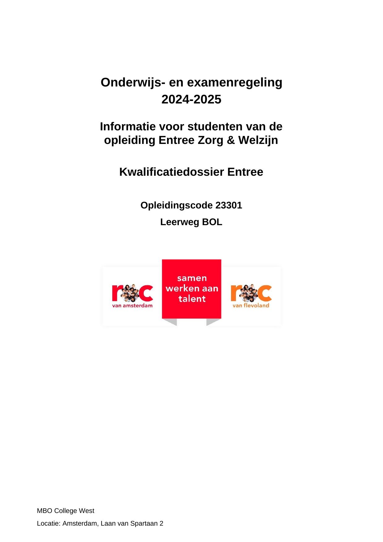 Entree Zorg & Welzijn WEN23301OR in cohort 2024-2025