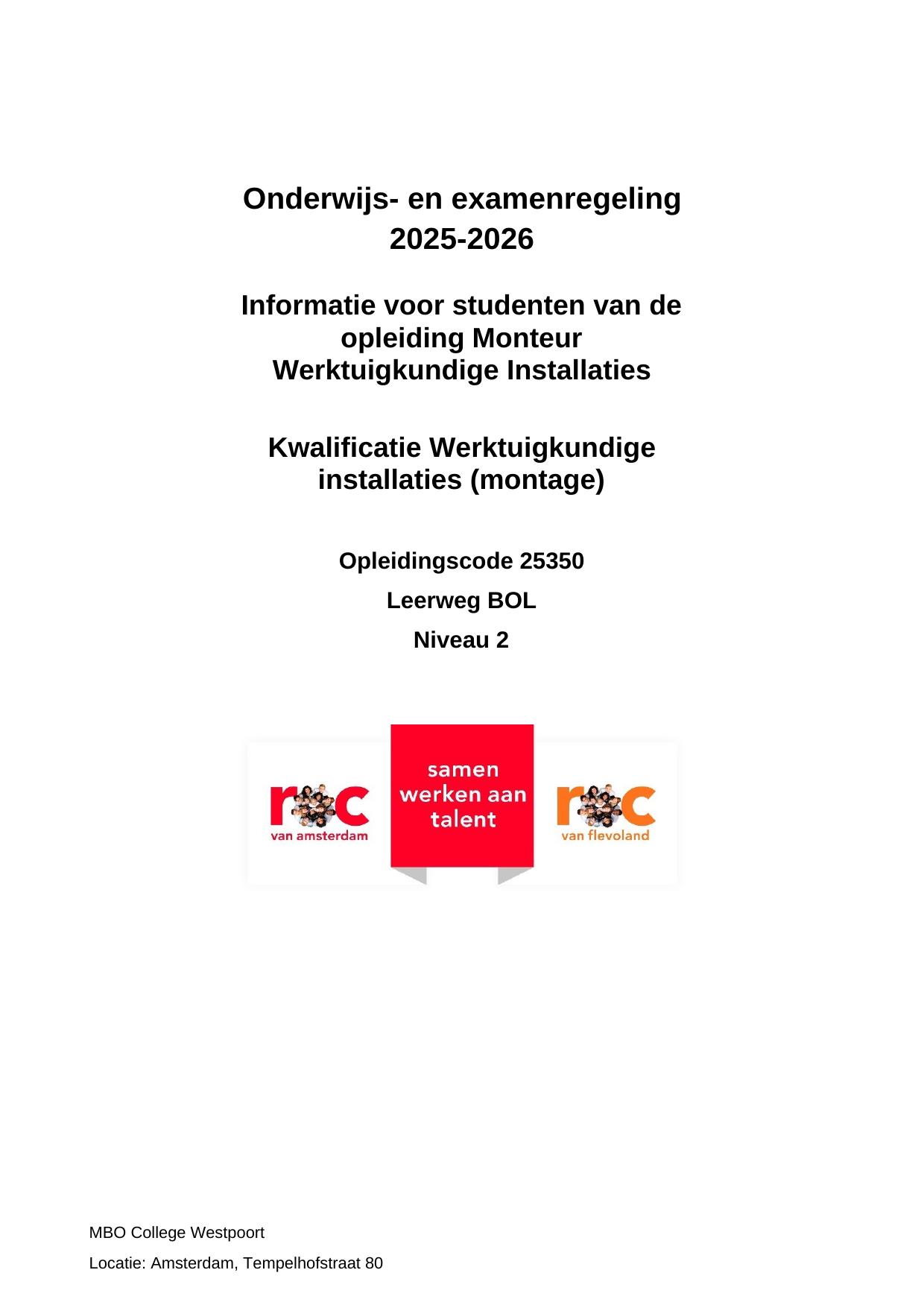 Monteur Werktuigkundige Installaties HGO25350OR in cohort 2025-2026
