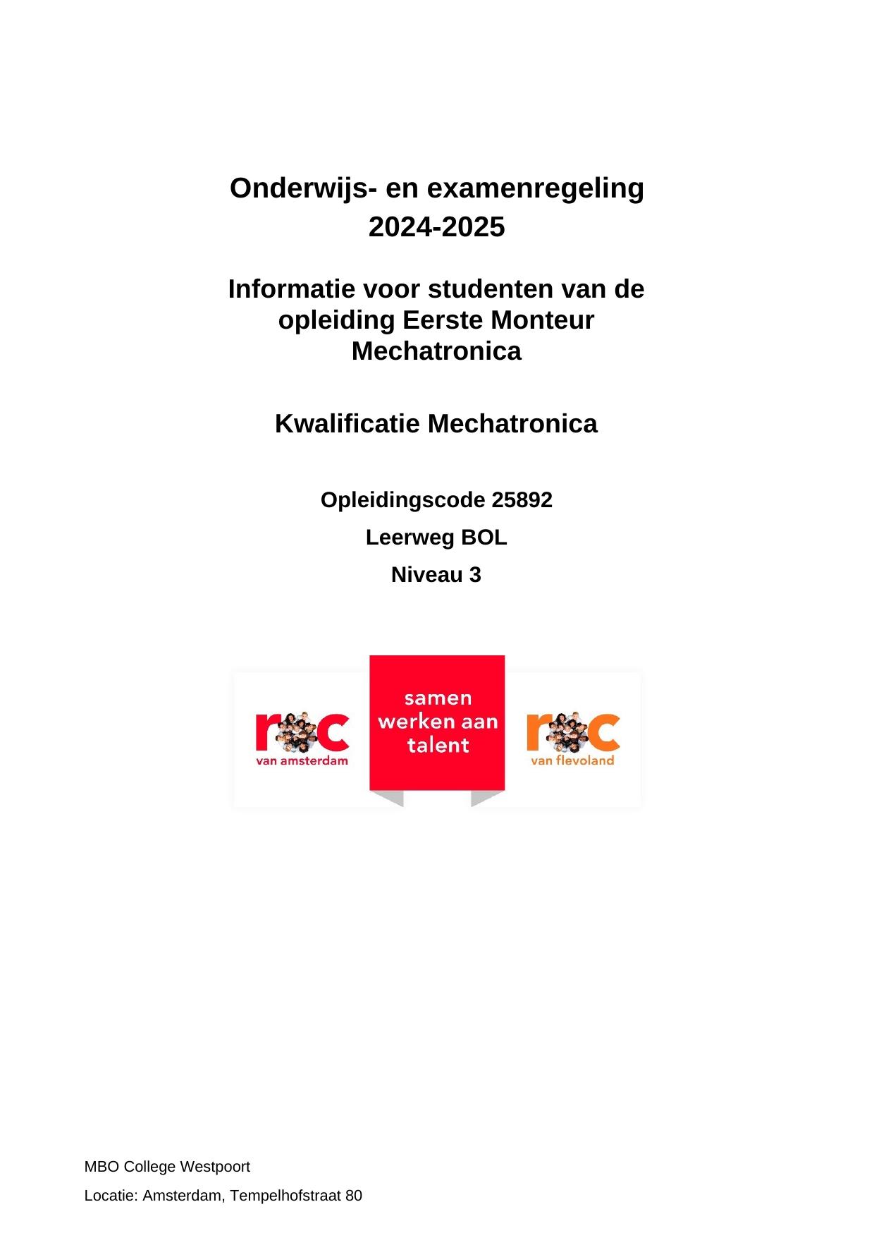 Monteur Mechatronica PNT25891OR in cohort 2024-2025